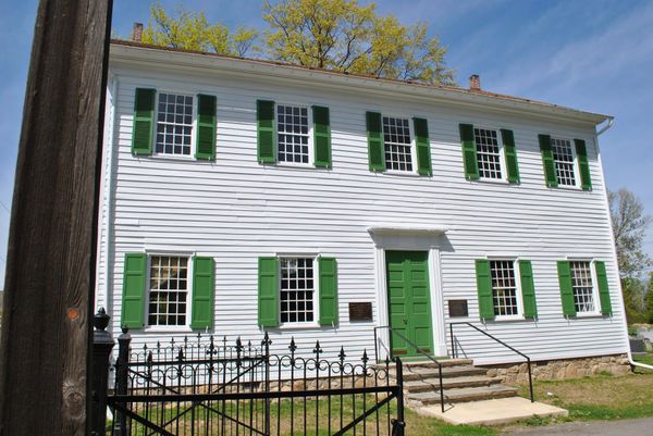A historic meeting house at River Street and Wyoming Avenue in the Old Forty Fort Cemetery in Forty Fort, in Luzerne County, Pennsylvania. It was built between 1806–08 in a New England meeting house style with white clapboard siding.